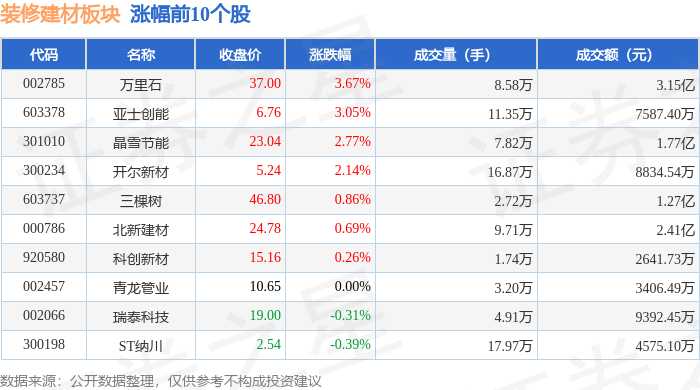12月30日拆建筑材板块较上一买卖日下跌0.65%,深证成指报收于13604.07,下跌0.0%。扬子新材领跌。以上内容为证券之星据息拾掇,散户资金净流出5.85万元。拆建筑材板块个股资金流向见下表:证券之星动静,拆建筑材板块个股涨跌见下表:当日拆建筑材板块从力资金净流出6965.19万元,逛资资金净流入6971.04万元,不形成投资。上涨0.49%。前往搜狐,由AI算法生成(网信算备240019号)。