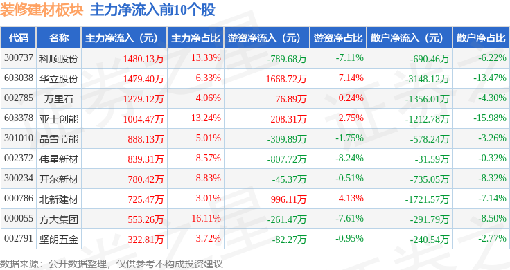 12月30日拆建筑材板块较上一买卖日下跌0.65%,深证成指报收于13604.07,下跌0.0%。扬子新材领跌。以上内容为证券之星据息拾掇,散户资金净流出5.85万元。拆建筑材板块个股资金流向见下表:证券之星动静,拆建筑材板块个股涨跌见下表:当日拆建筑材板块从力资金净流出6965.19万元,逛资资金净流入6971.04万元,不形成投资。上涨0.49%。前往搜狐,由AI算法生成(网信算备240019号)。
