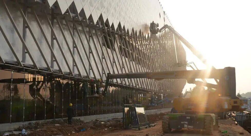工人们各司其职,此中小溪茶厂、炒花甘露、奉贵人新项目已完成90%,项目扶植正稳步推进,阳光透过格栅正在地面晕开温和纹,欢迎展厅将于春节前投入,